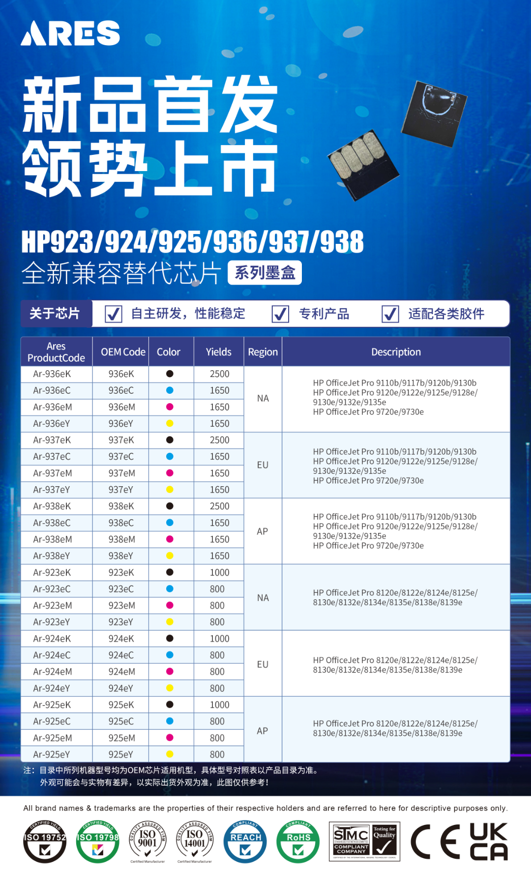 艾瑞思ARES适用于惠普W2180/2190/2220系列硒鼓的兼容可代替芯片现已正式上市!芯片性能稳定,适用于全区域、全系列型号,详情请咨询您的客户经理!